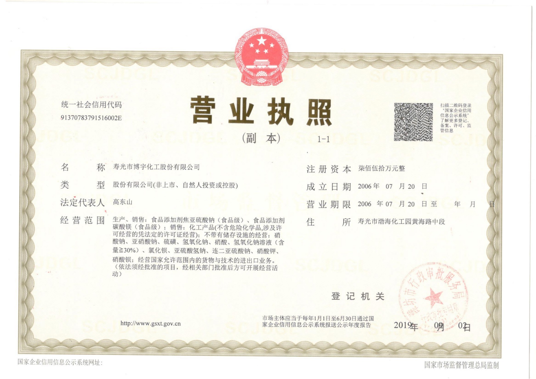 工廠地址:壽光市羊口鎮渤海化工園黃海路中段